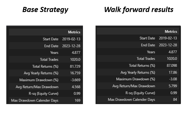 Results comparison: Base strategy and Walk Forward Backtesting Results