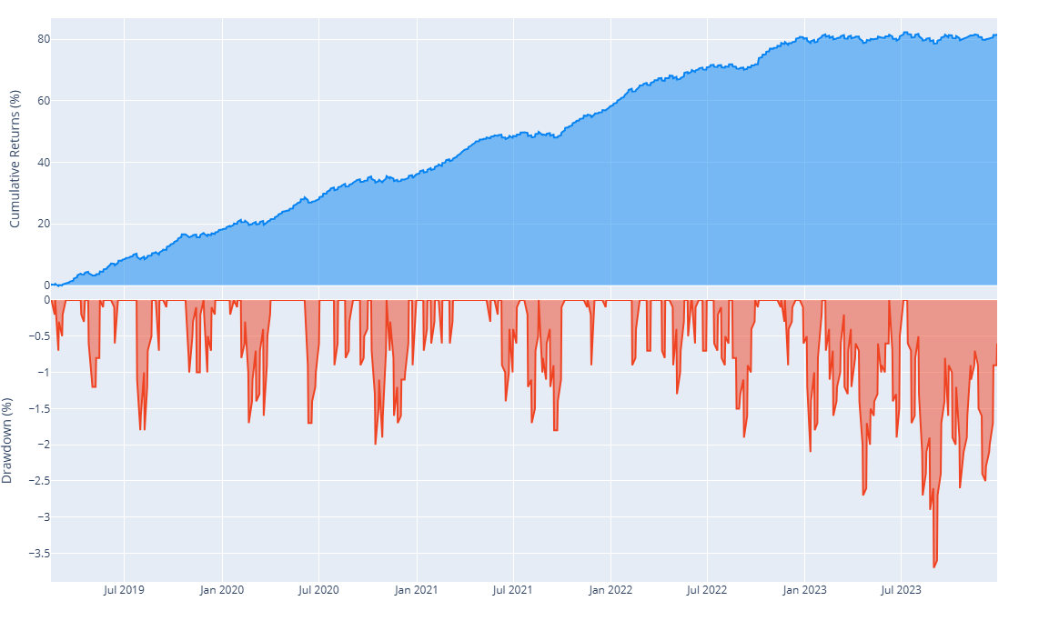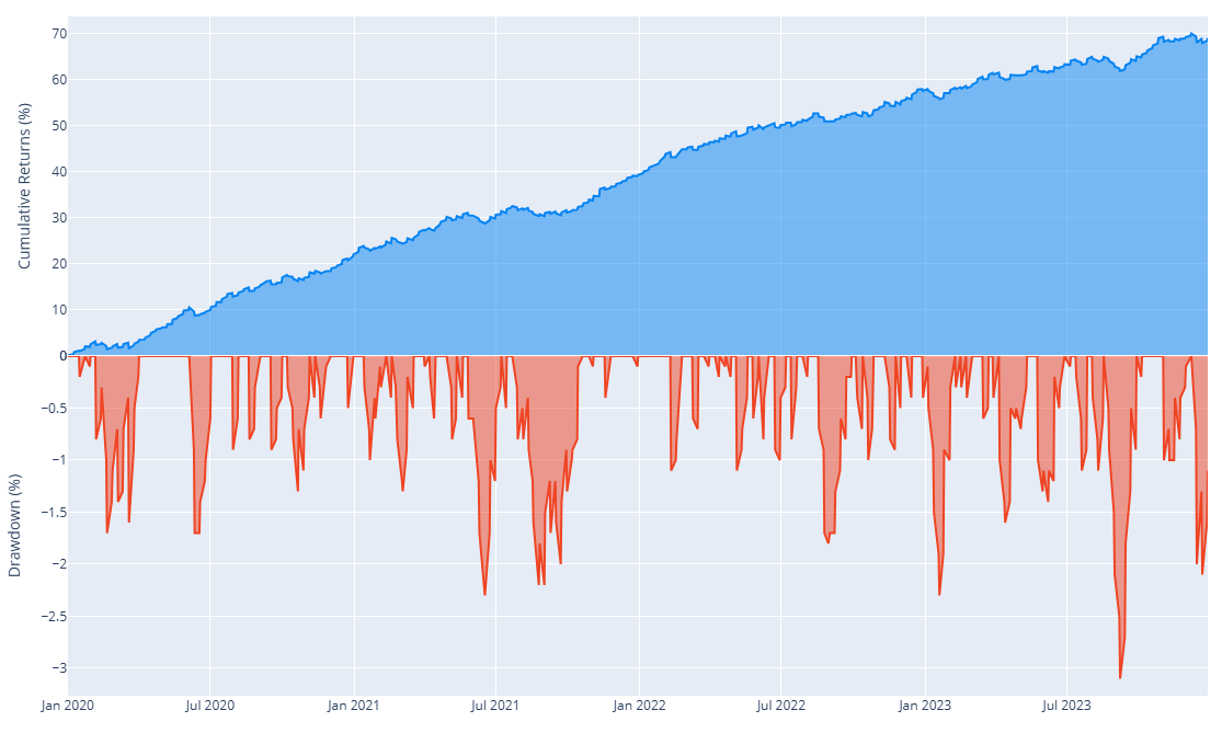 With walk-forward backtesting, the annual return improves along with the return-to-drawdown ratio. It also reduces the chance of overfitting.