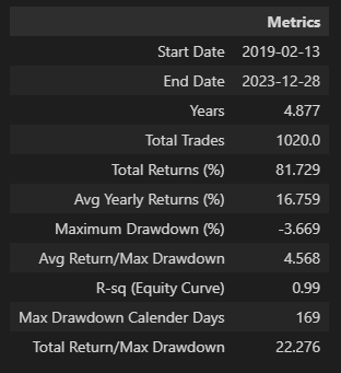 For the current strategy, these parameters were chosen after testing them again and again from 2019 to 2023. I have not changed any of these parameters after 2024.